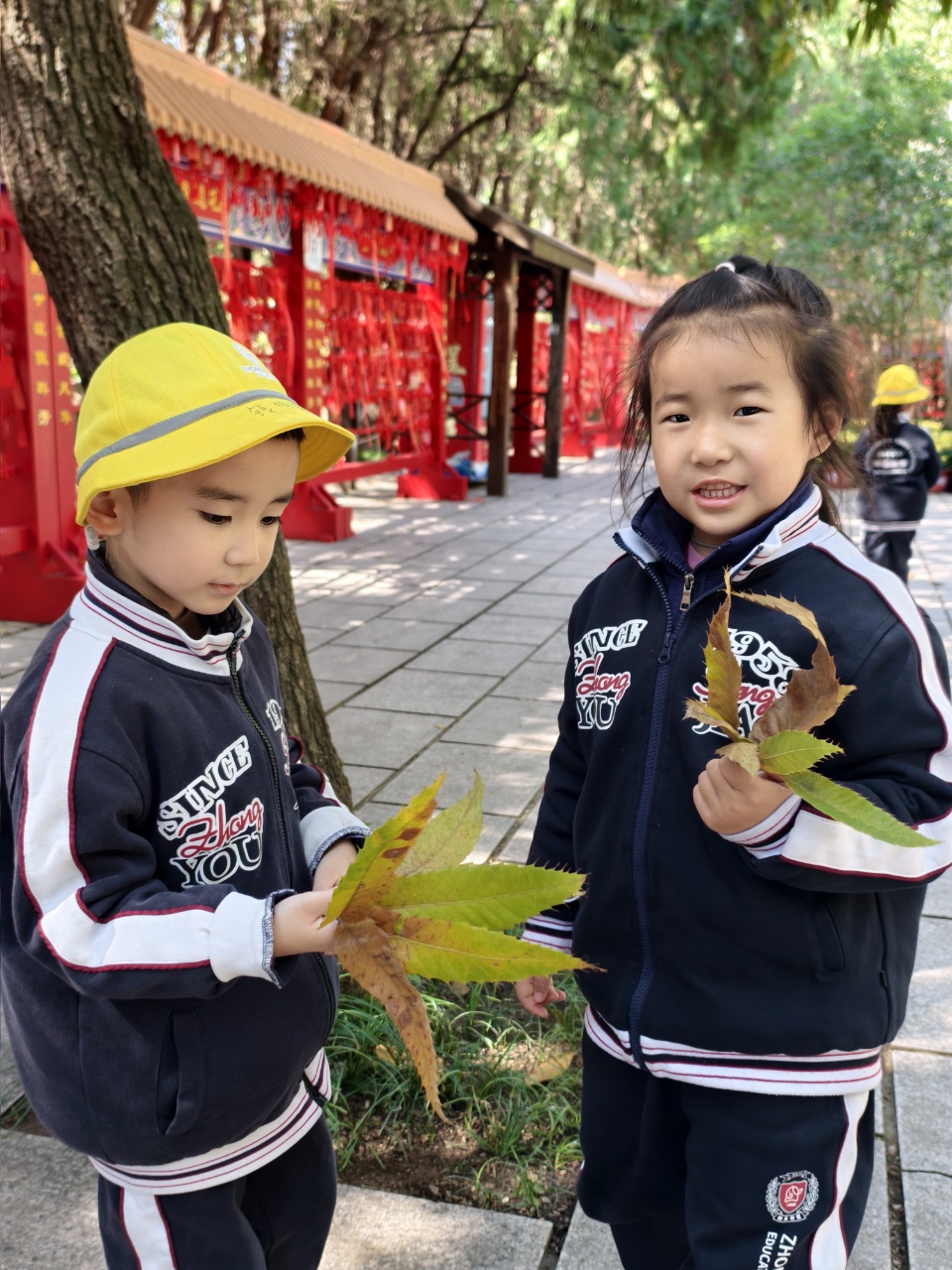 背着鼓鼓的小书包,揣着满满的期待,孩子们排着整齐的队伍向山林进发。路边挂满橙红色的小灯笼,野菊带着清甜的香气扑面而来,脚下的落叶踩起来“沙沙”作响,像是大自然奏响的迎宾曲。孩子们一会儿蹲下身观察路边的小蚂蚁搬家,一会儿指着枝头的野果叽叽喳喳讨论,偶尔捡起形状特别的落叶,小心翼翼夹进笔记本里,当作秋天的纪念。