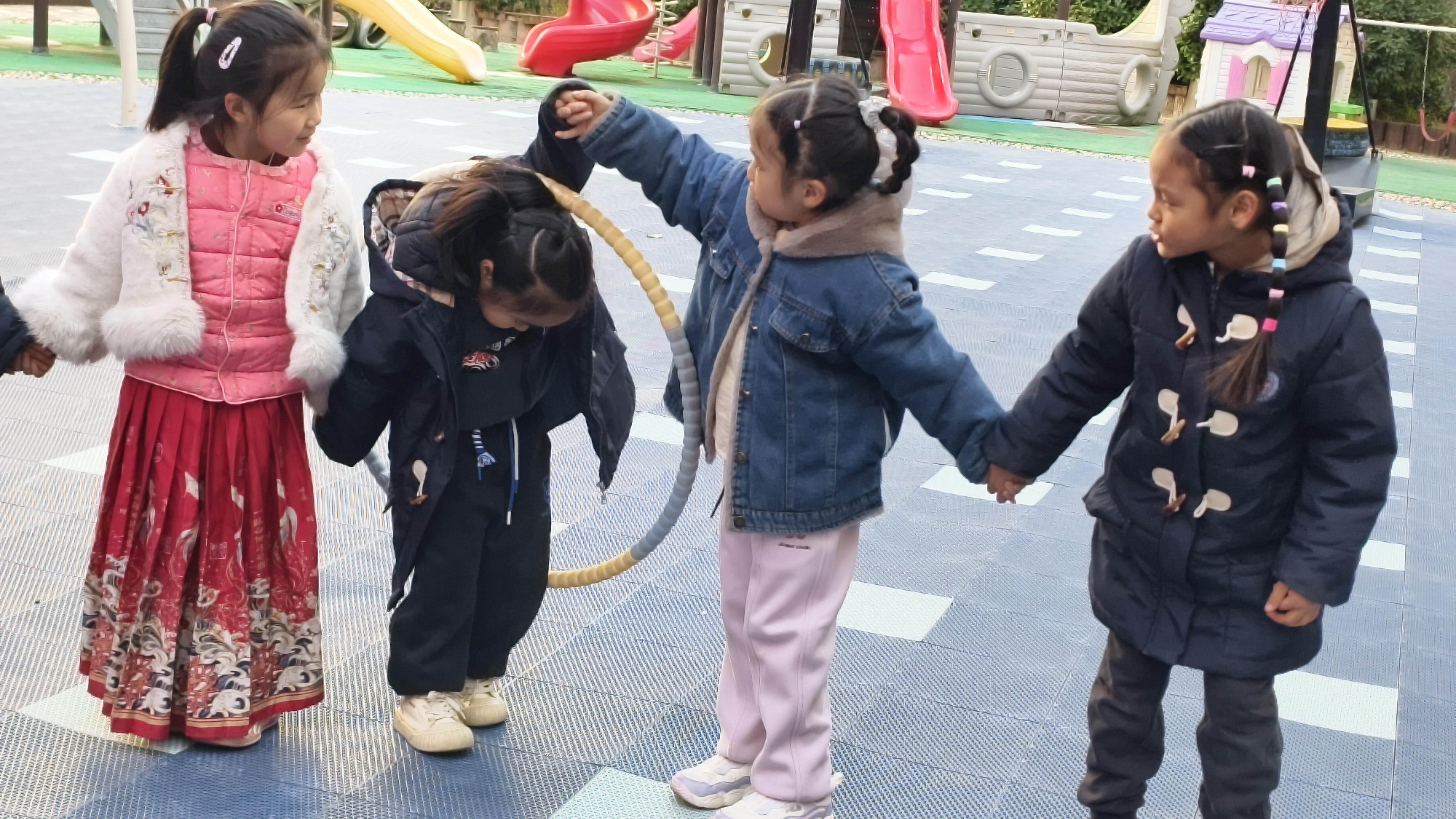 看!孩子们手拉手围成圈,小小的呼啦圈在他们之间灵动穿梭。从最初的小心翼翼,到后来的默契配合,每一次传递都是一次成长的跃动。他们专注的眼神、紧紧相握的小手,彰显着团队的力量;每一次成功传递后的欢呼,都是快乐最纯粹的表达。