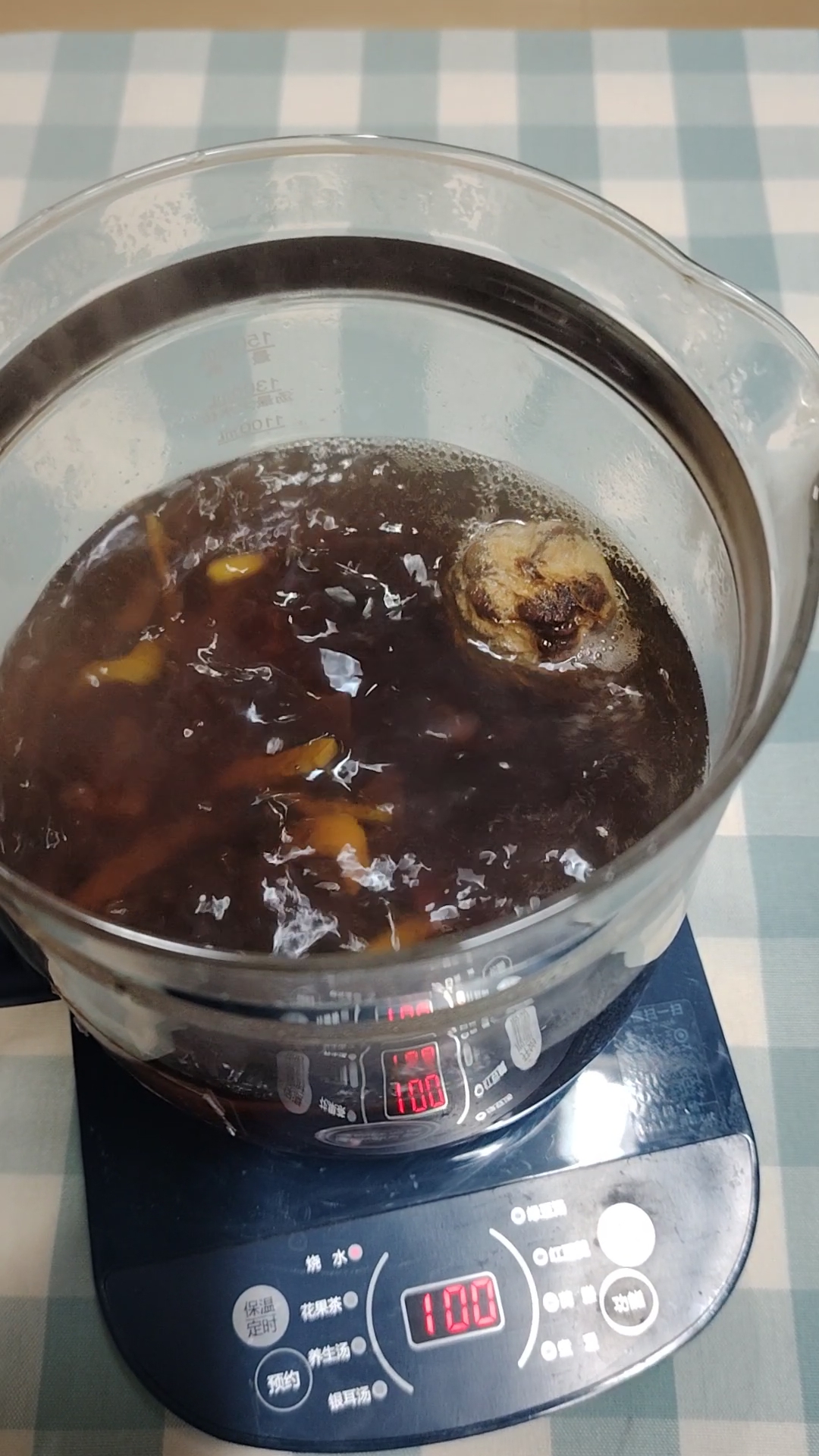 养生壶里,陈皮、罗汉果和水在高温下碰撞出奇妙的反应,茶汤咕嘟咕嘟地翻滚,渐渐染上浓郁