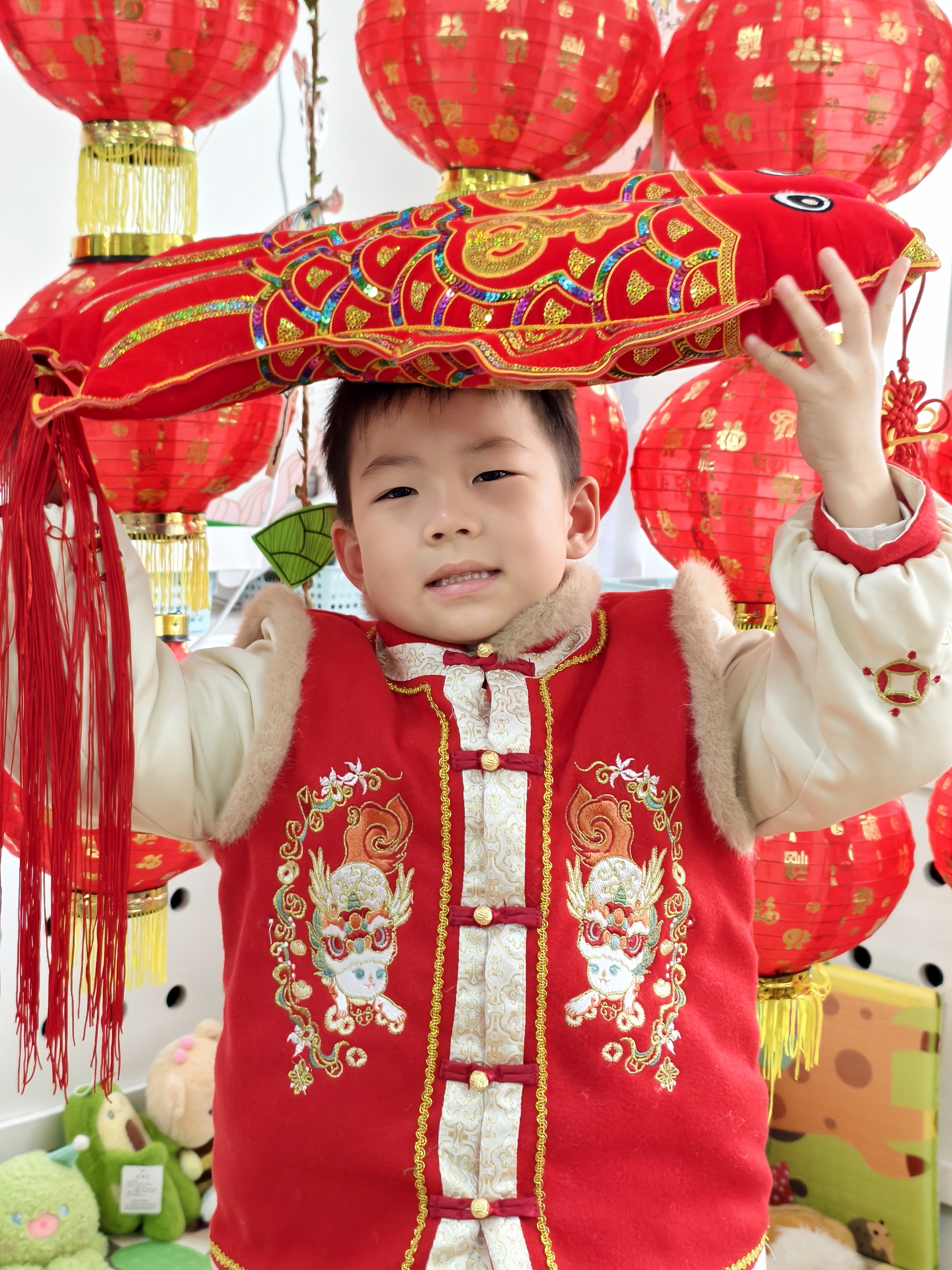 新年的脚步悄悄临近,幼儿园里早已被浓浓的年味包裹啦!红彤彤的灯笼高高挂,甜滋滋的糖葫芦握在手心,喜庆的中国结、吉祥的锦鲤挂饰,还有宝贝们身上红彤彤的新衣,把新年的氛围感拉满~