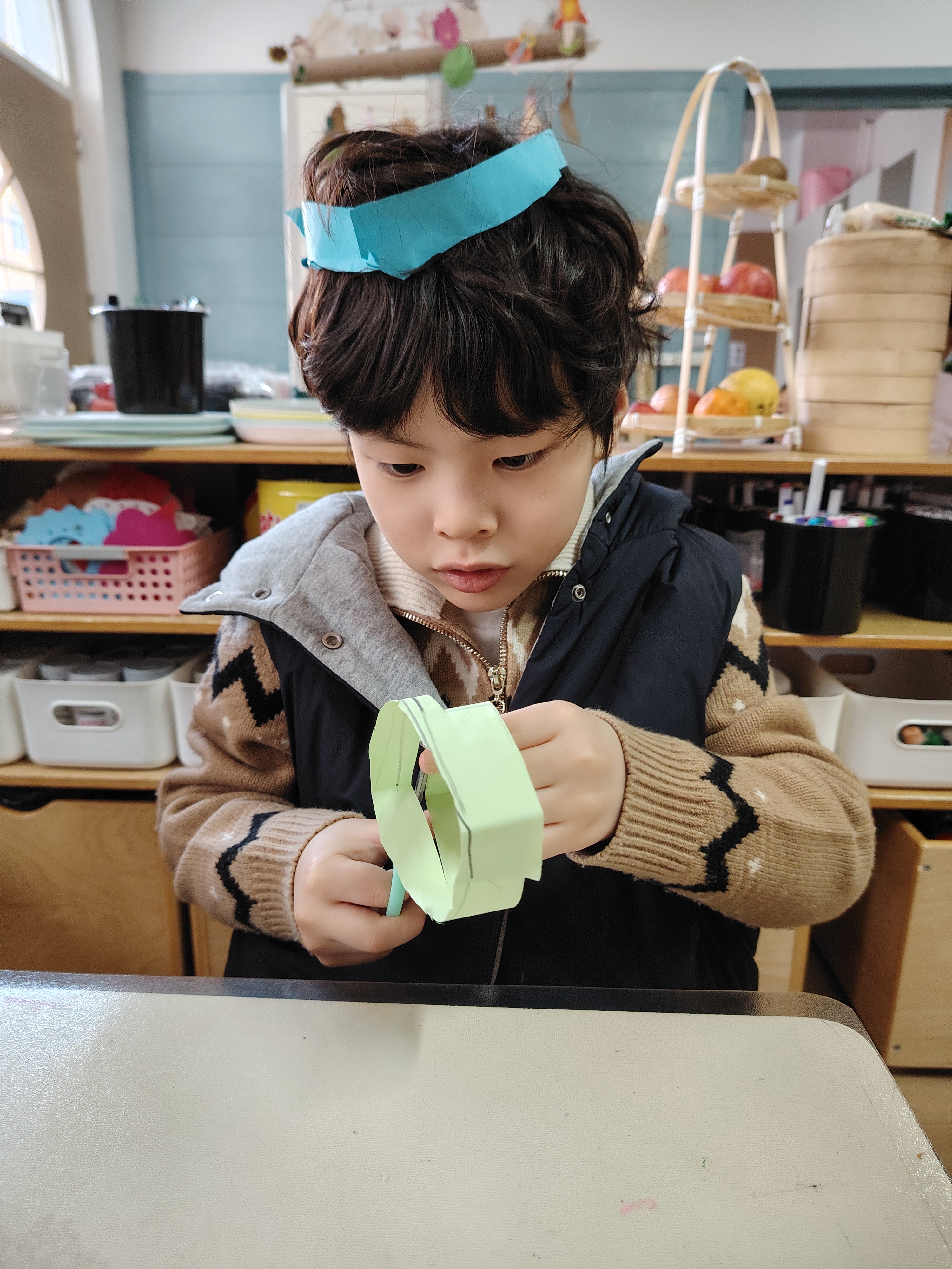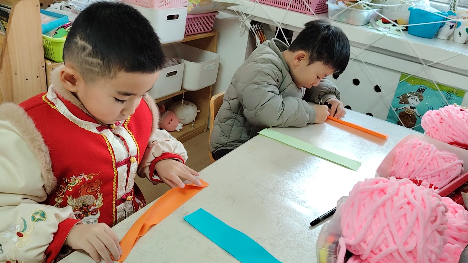 理论的种子,需要在实践中生根发芽。在动手环节,孩子们化身“小小科学家”,拿起彩纸、剪刀和胶水,全神贯注地进行折叠、粘贴。从最初的普通纸环,到扭转180度后的莫比乌斯环,每一个步骤都凝聚着专注与思考。图片中,孩子们小心翼翼地固定接口,认真地在纸环上做标记,那份沉浸式的投入,正是科学精神最纯真的模样。