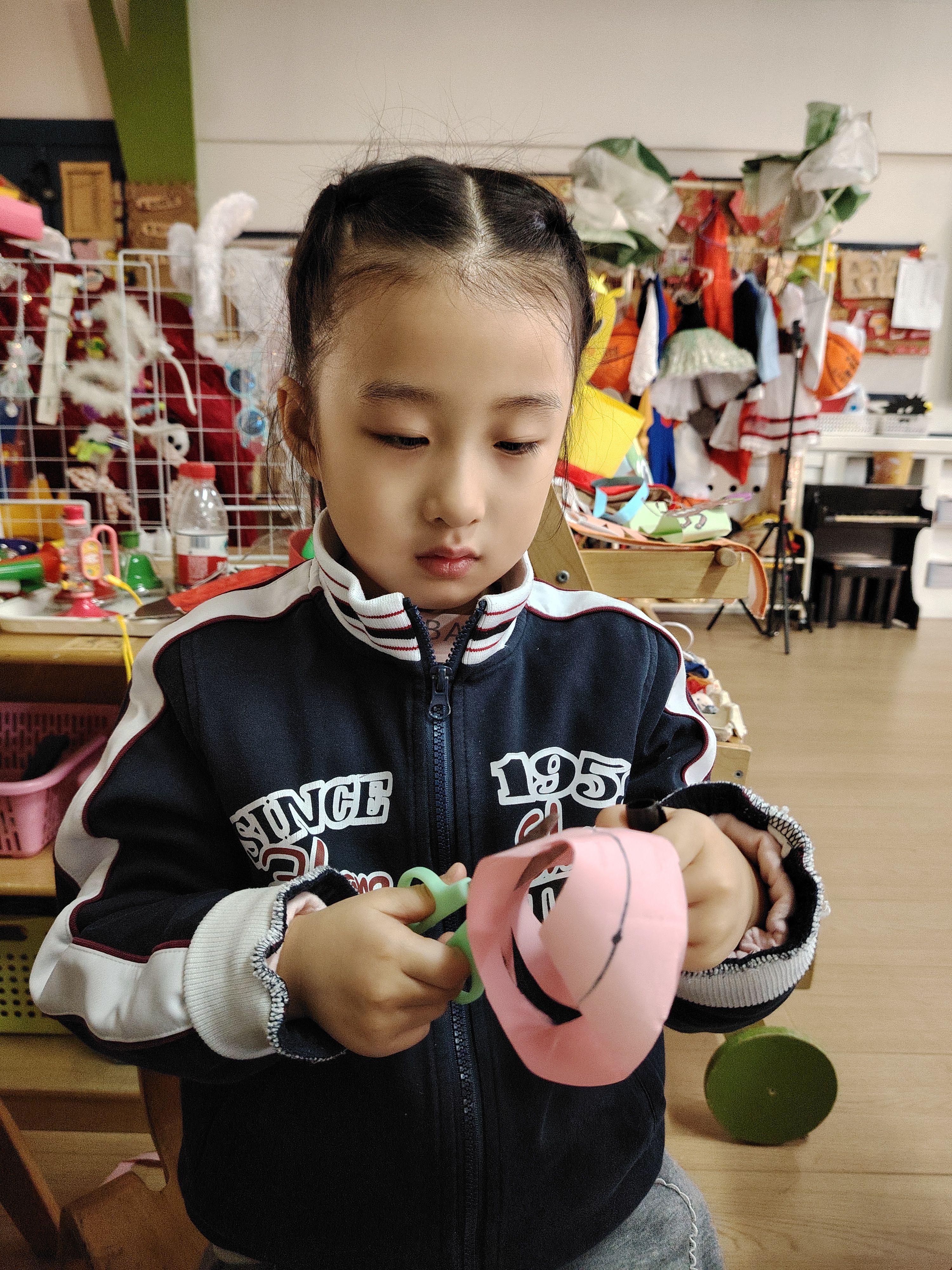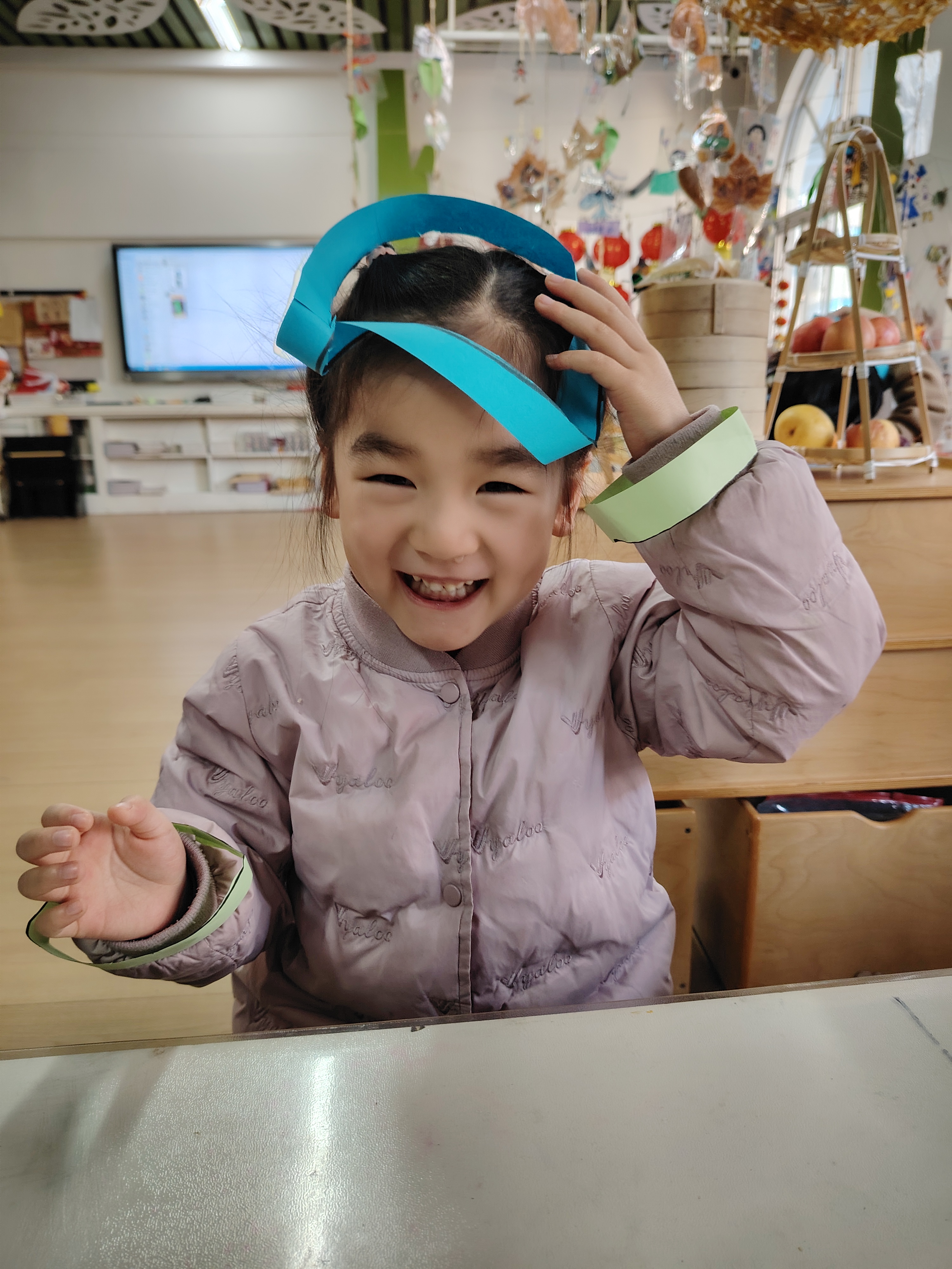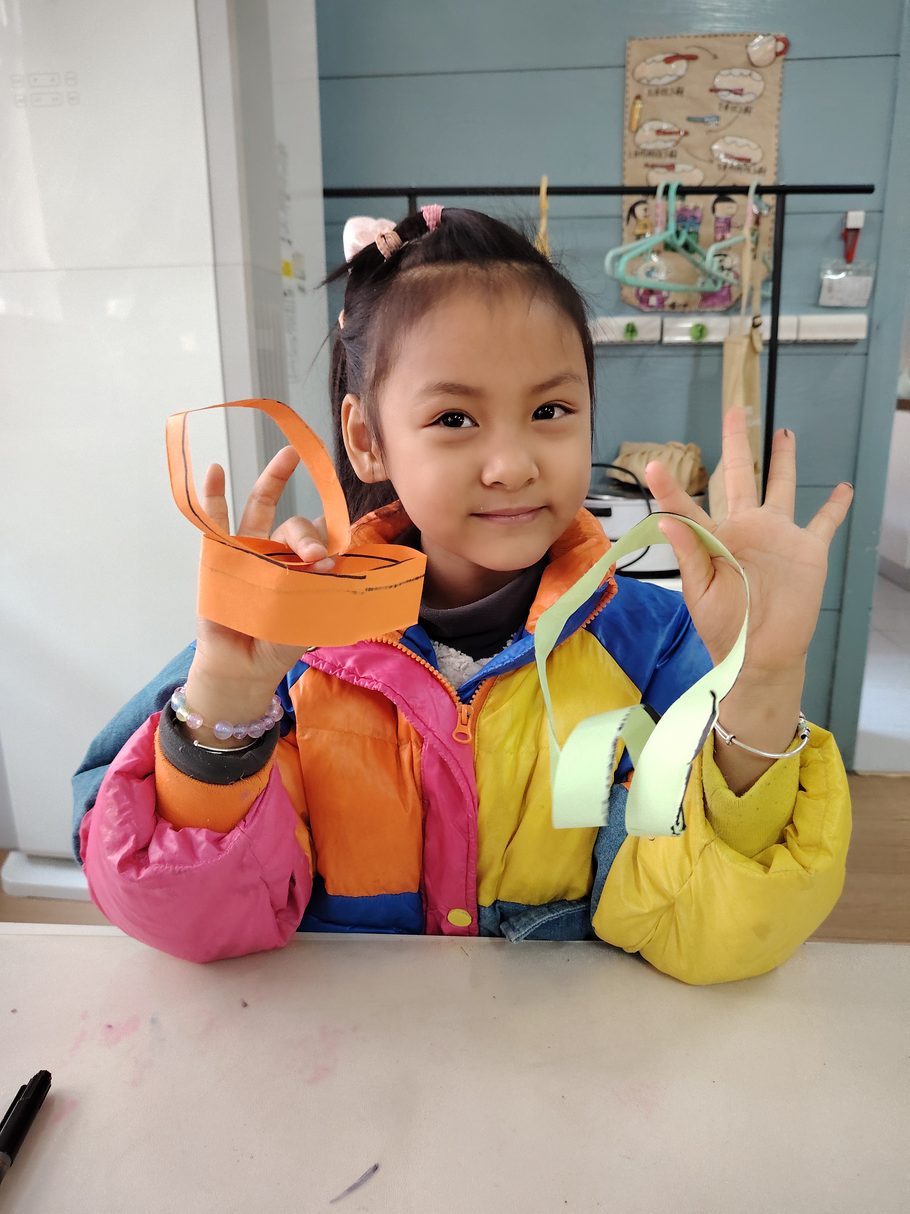 当老师引导孩子们剪开莫比乌斯环时,惊喜瞬间爆发!原本以为会一分为二的纸环,竟然变成了一个更大的环。孩子们欢呼着、展示着自己的作品,有的将彩色的莫比乌斯环戴在头上,有的套在手腕上,一张张笑脸在五彩纸环的映衬下格外灿烂。