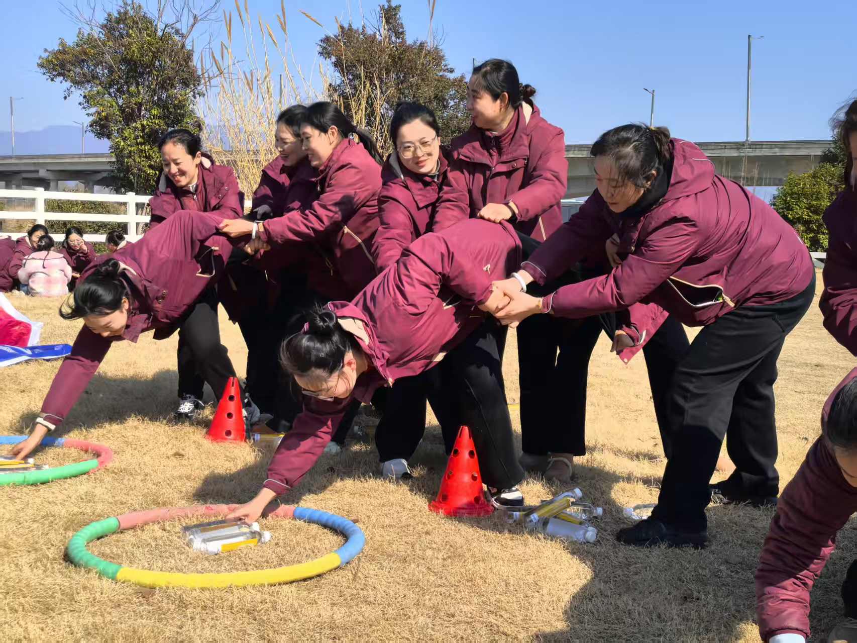 在寻龙取水环节,老师们相互支撑、巧妙配合,用智慧和勇气完成挑战,既考验身体协调性,也展现了团队之间的信任与支持。