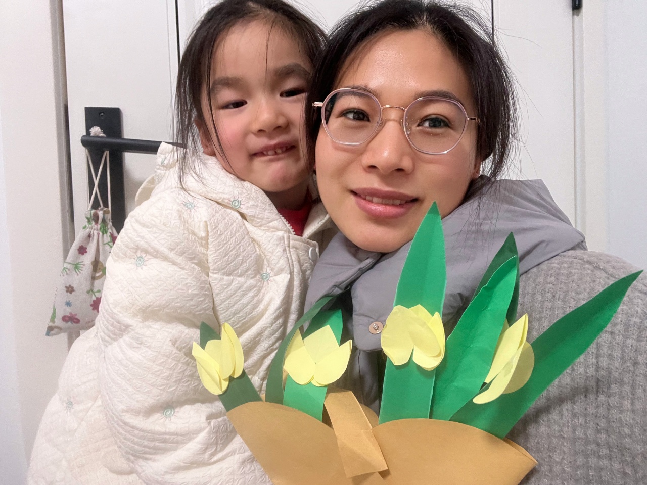 一张张彩纸在孩子们手中翻转、折叠、粘贴,变成了一朵朵娇艳的郁金香、温柔的爱心花。有的宝贝为妈妈献上红粉相间的花束,笑着说“妈妈辛苦了”;有的宝贝把花束送给奶奶、外婆,用行动表达感恩;还有的宝贝在教室里提前练习,要把这份惊喜带回家。