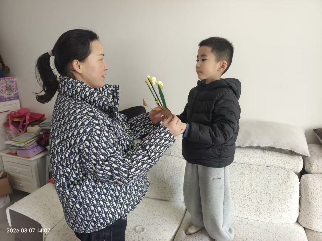 每一片花瓣都藏着孩子的认真,每一根花茎都连着纯粹的心意,这是专属于女神节的浪漫仪式感。