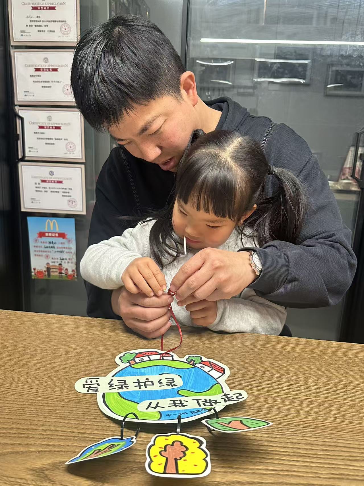 亲子制作护树卡片,不只是一次手工活动,更是一堂无声的生命启蒙课。当孩子用小手为卡片上的小树涂上第一抹绿,那生机盎然的颜色便跳进了他的眼睛,也种进了他的心里。他直观地触摸到“绿色生命”的美好形态,也懵懂地开始理解,这份美好需要我们温柔以待。轻轻贴上“爱护我”的字样时,一颗爱护花草树木、保护自然环境的种子,也在此刻悄然埋下。