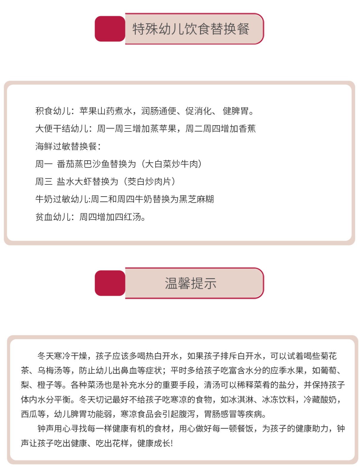 冬天孩子需要更多的热量来抵御寒冷,所以可以适当增加高热量、高蛋白的食物,如牛肉、羊肉等。这些食物不仅热量丰富,还能促进脂肪代谢,帮助体内热量生成,抵御严寒;同时鼓励孩子多吃新鲜水果,尤其是富含维生素c的水果,如橘子、冬枣、猕猴桃等。还可以将鸭梨、银耳枸杞和冰糖一起煮水,滋润肺部,效果特别好,美味又富含维生素。冬天孩子每餐都应该有新鲜蔬菜的存在,比如绿色的菠菜、油菜,紫色的甘蓝,红色的胡萝卜、西红柿,还有白色的菜花、鲜藕,黑色的木耳、香菇等。多种颜色的蔬菜不仅营养全面,还能促进消化。