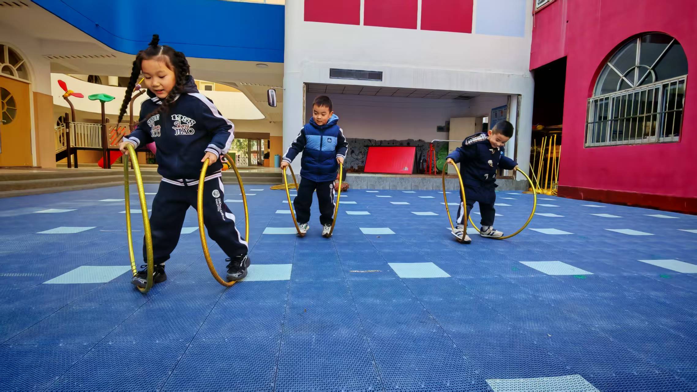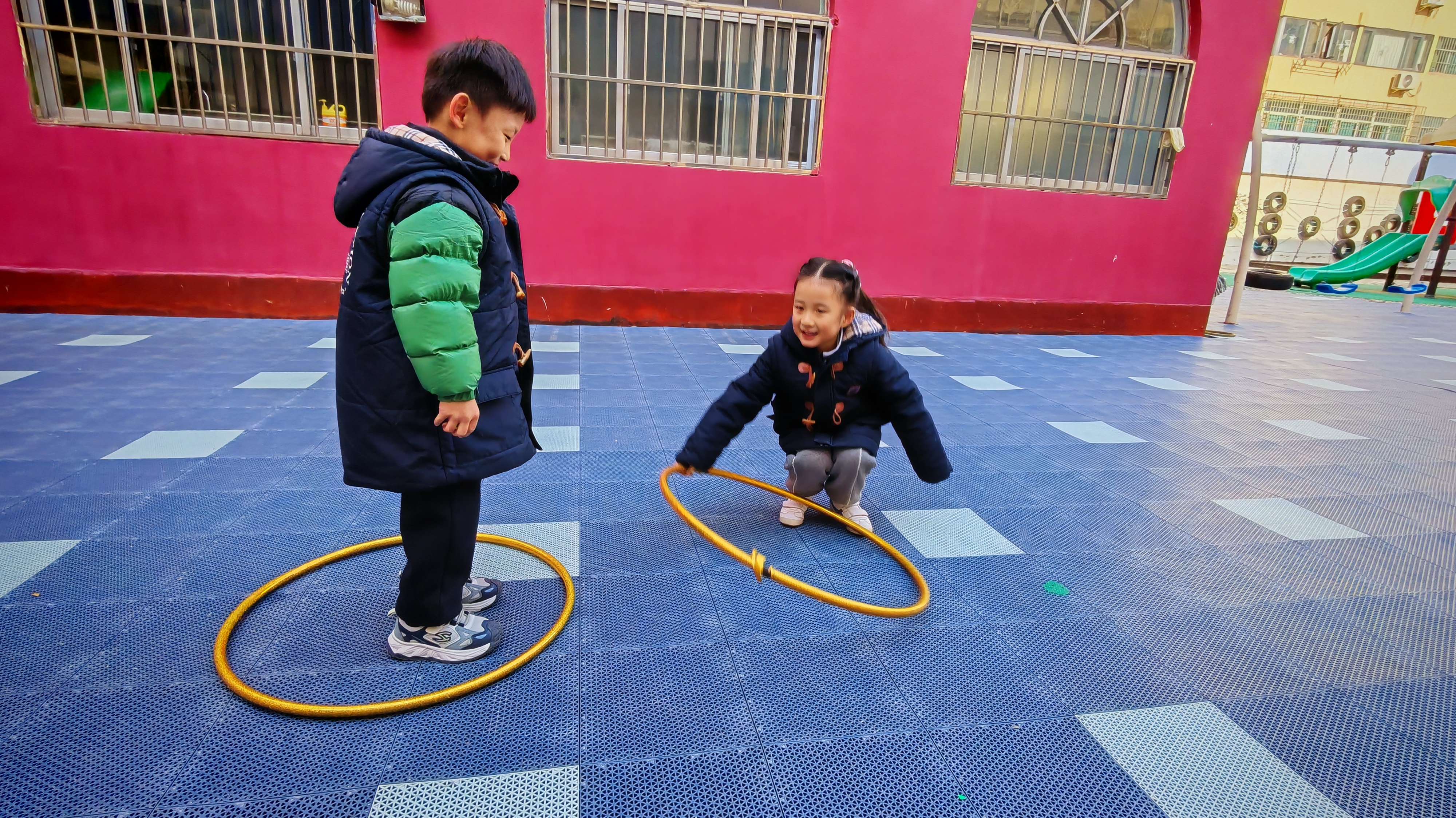 小小的圈圈藏着无限乐趣,孩子们尽情解锁多元玩法:跳跃闯关、圈圈运球、合作玩圈,在自主探索中释放好奇心与探索欲。游戏中,有独自玩耍的快乐有同伴间默契搭档、互帮互助,温馨互动间的满满暖意,不仅锻炼肢体协调性,更在协作游戏中提升合作能力,收获珍贵友谊。每一次尝试都藏着成长的惊喜,每一段互动都定格童真瞬间,孩子们在趣味体验中感受快乐、收获成长,尽显天真烂漫的活力与风采。