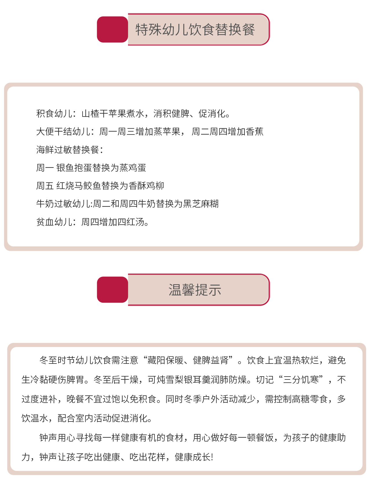 冬至时节,气候寒冷干燥,幼儿饮食应以 “温润滋养、健脾防寒、提升抵抗力” 为重点,选择温和柔软、
