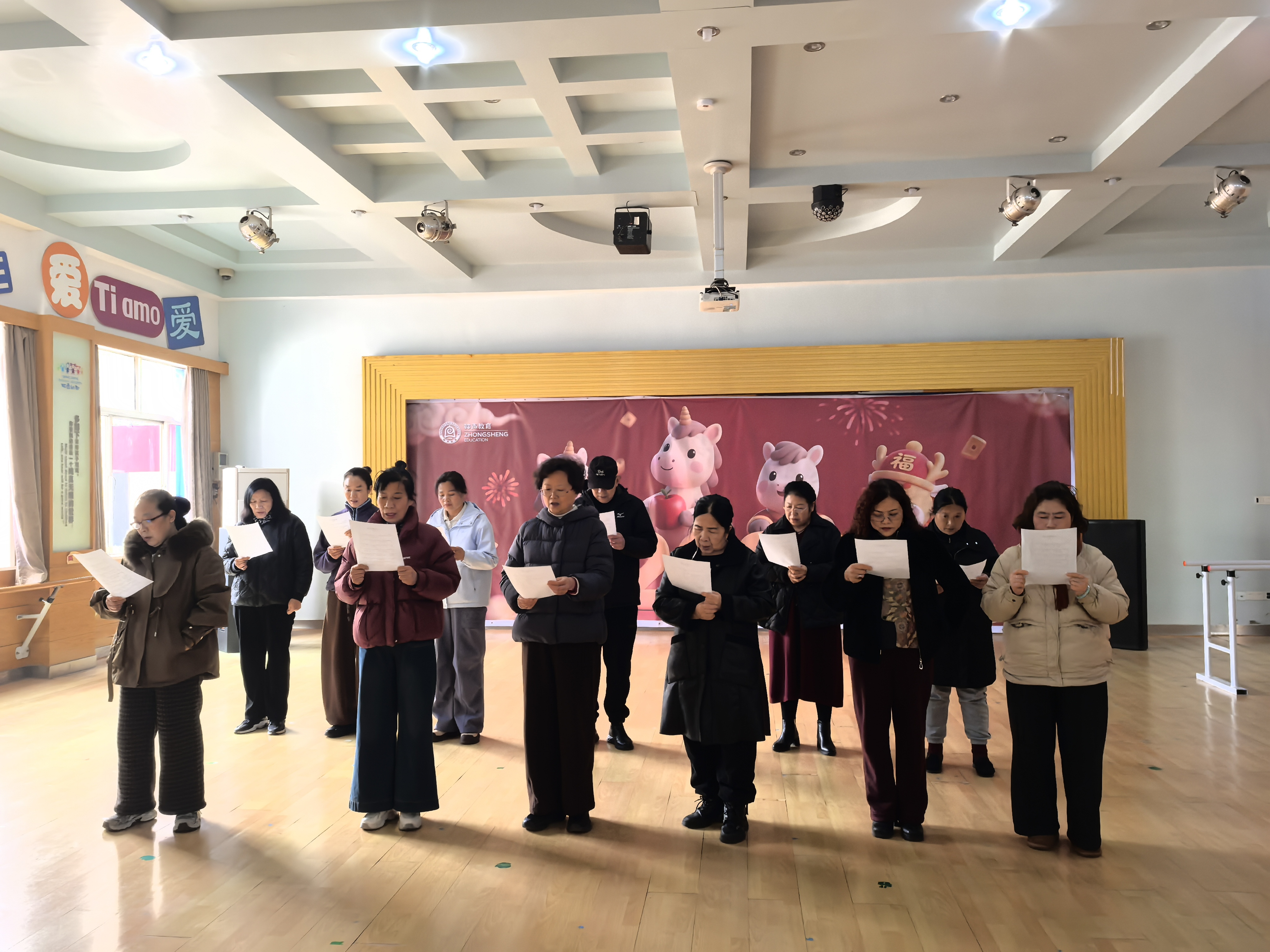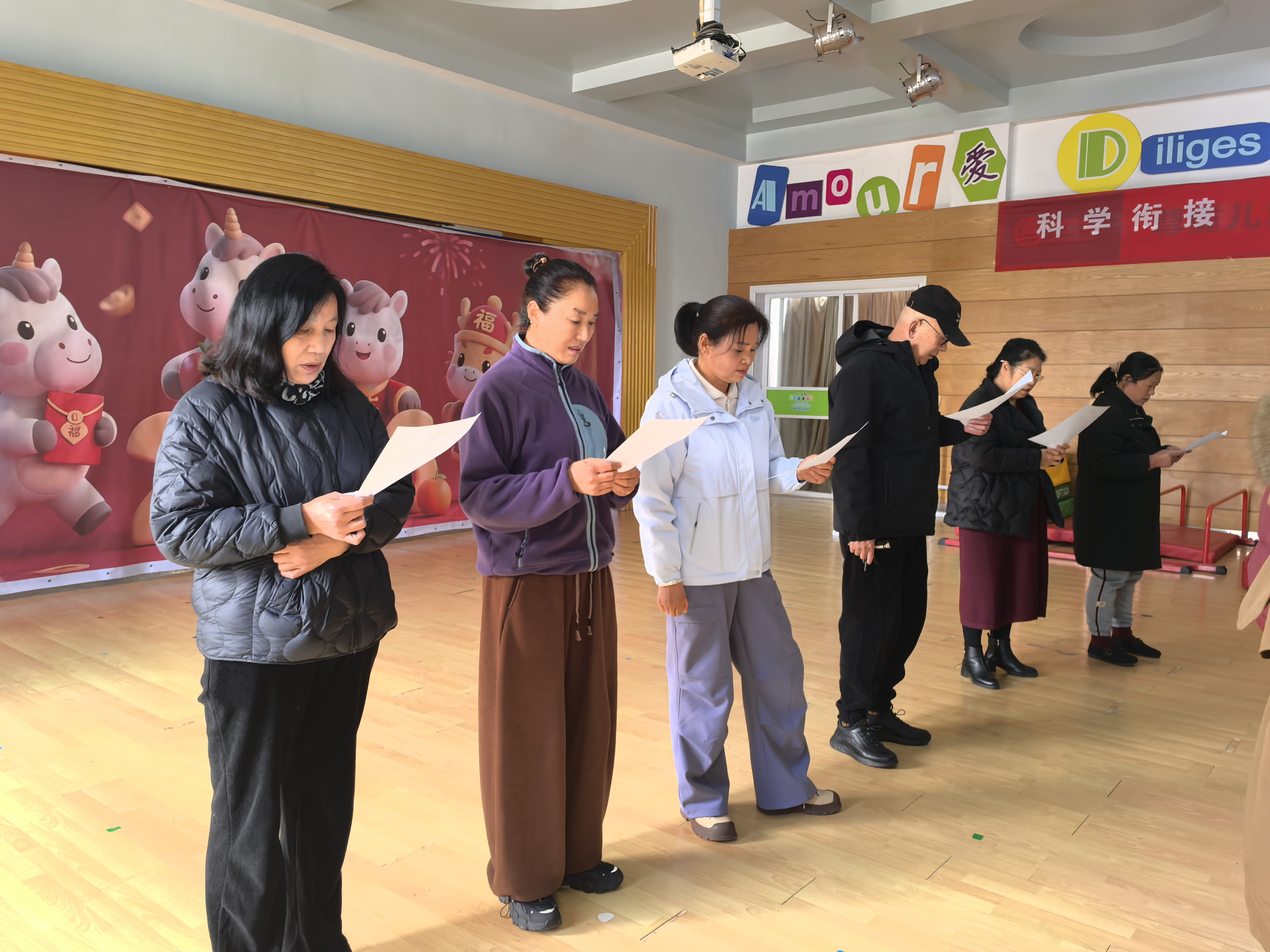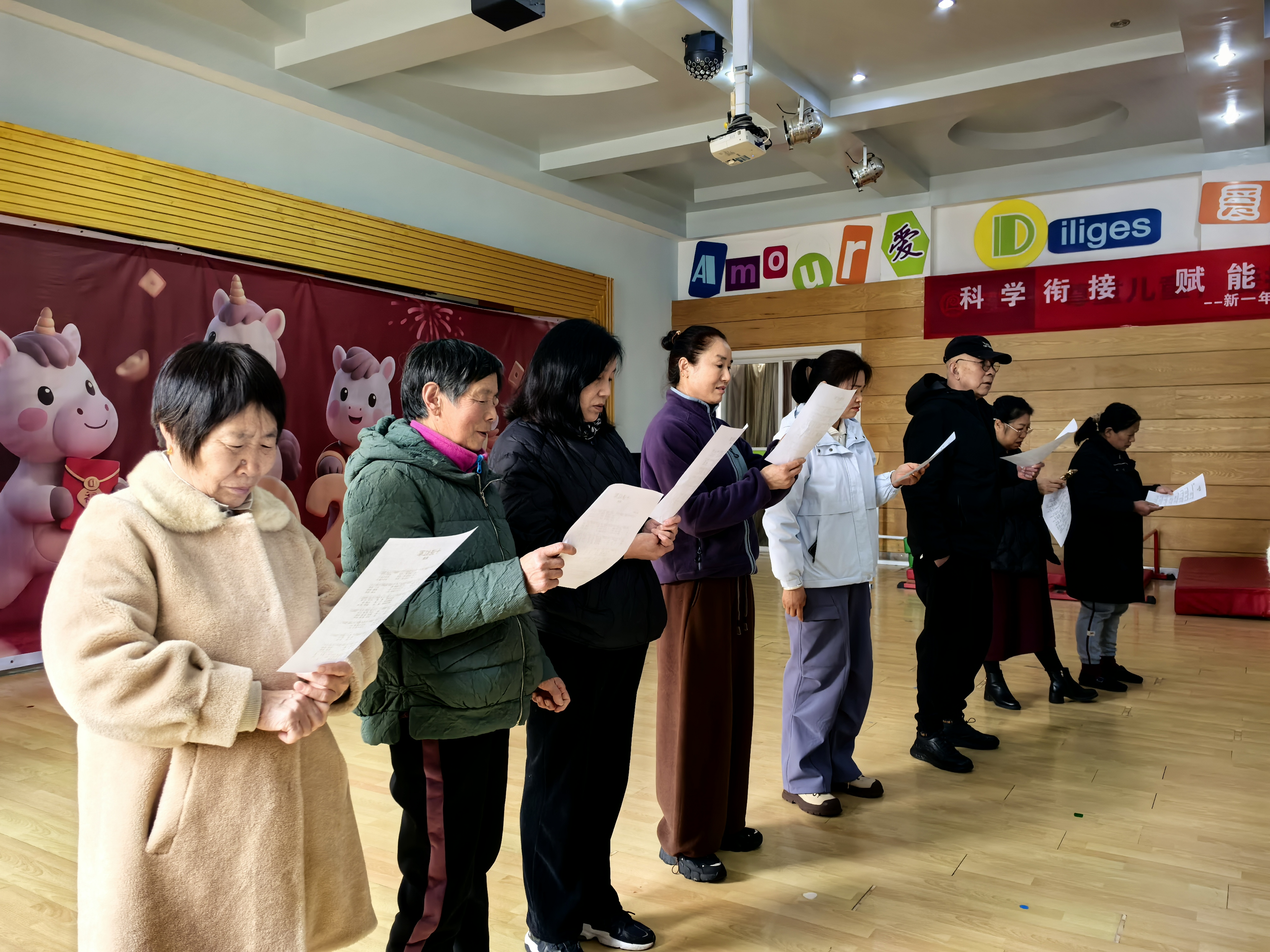排练现场,在老师的指导下,爷爷奶奶们认真聆听节奏、揣摩歌词、练习发声。从生疏到熟练,从零散到和谐,每一句歌词都饱含深情,每一个音符都传递着温暖。他们眼神专注、配合默契,用饱满的精神状态和真挚的情感,唱响对生活的热爱,唱出对孙辈、对幼儿园的美好祝福。